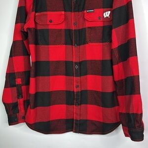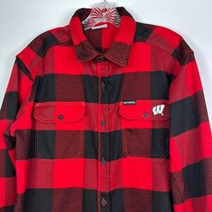 Columbia UW Wisconsin Buffalo Plaid Heavy Long Sleeve Button Up Shirt Large