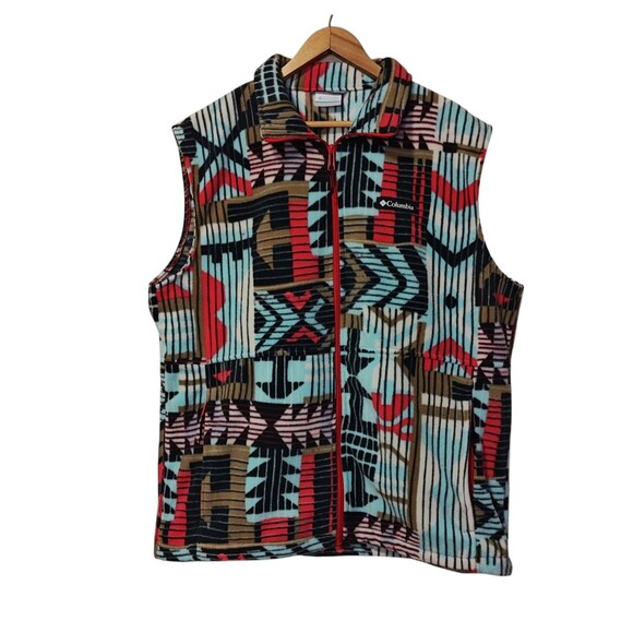 Columbia Vest Mens Large Fleece Zip Front Retro Aztec Pattern Outdoors