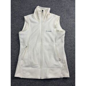 Columbia Vest Womens Medium White Fleece Full Zip High Collar Zip Pockets Hiking