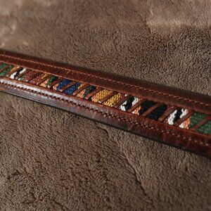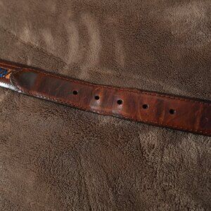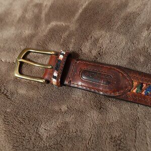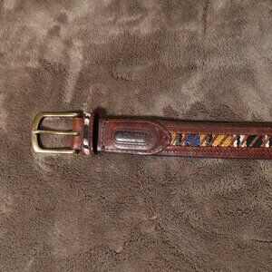 Columbia Vintage Brown Leather Belt with Guatemalan Fabric Inlay (36/90)