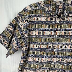 Columbia Vintage Button Down Short Sleeve Shirt Men’s Size Large Tribal Fish