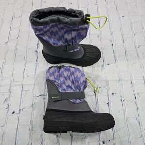 Columbia WOMENS YOUTH SZ 6 Powderbug Plus II Print Snow Boot Waterproof Purple