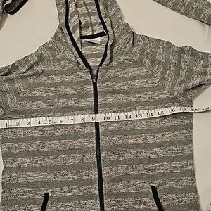 full zipper hooded jacket in great pre-owned condition. please refer to photos for more details and measurements. smoke-free home. Questions? Leave a comment below!