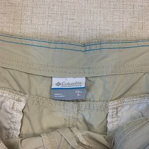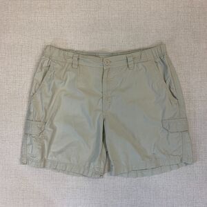 COLUMBIA WASHED OUT CARGO SHORTS MENS 38 BEIGE ELASTIC SIDE WAIST COTTON OUTDOOR