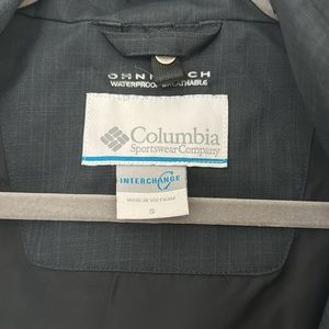 Men’s Columbia Waterproof Jacket. Great condition. Minor flaw shown in photo (missing button). Size small