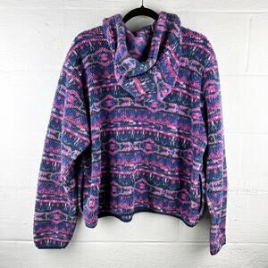 Columbia West Bend Hooded Sherpa Sweater Geometric Print Purple/Blue Size XXL