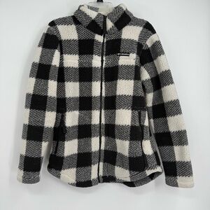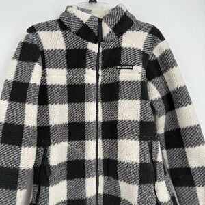 Columbia West Bend Sherpa Fleece Jacket Black White Check Size Small Full Zip