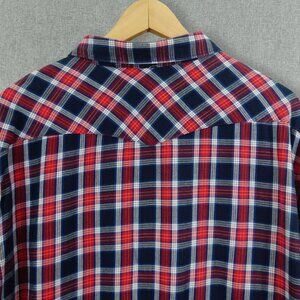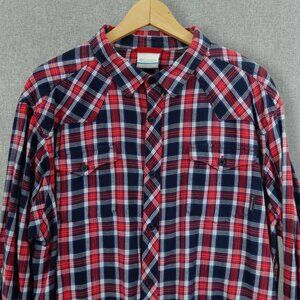 Columbia Western Yoke Shirt XL Red Navy Plaid Long Sleeve Button Up