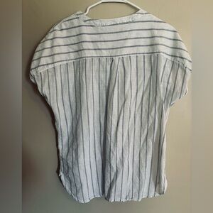 Classic Columbia shirt. White fabric with navy stripes. Button-up design.