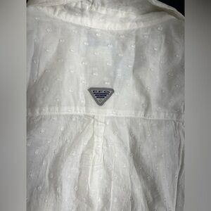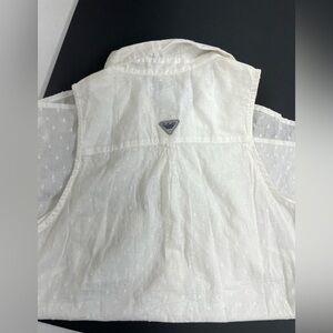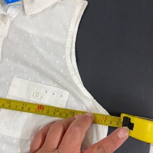 Chic sleeveless blouse with button-up front. Features a subtle dotted pattern and chest pocket.