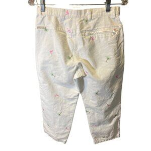 Columbia White Summer Palm Tree Flamingo Embroidered Cropped Pants Sz 6