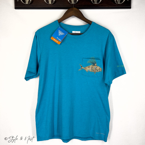 Columbia Wild Cast Pocket Tee Fish Retro Size Medium