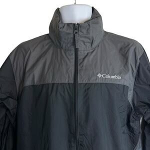 Columbia Windbreaker Gray Black Size Medium Hood Toggle Cinch Waist