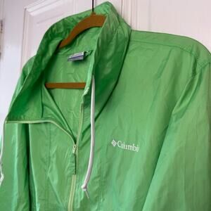 Columbia Windbreaker Jacket Womens Large Green Drawstring Full Zipper *Flaws