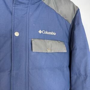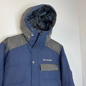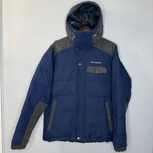 Columbia Winter Challenger Hooded Down Jacket 550 Down Fill Puffer Men's L Blue