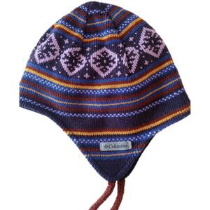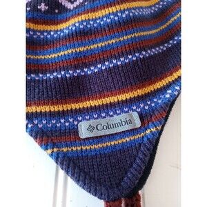 Columbia Winter Hat Unisex OS One Size Purple Nordic Stripe Ear Flaps Tassels