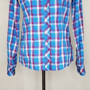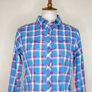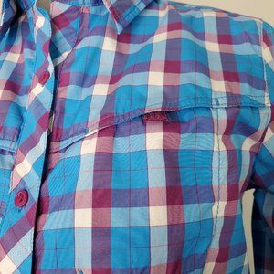 Columbia Woman's Blue Purple Collared Button Up Plaid Insect Blocker Top Size S