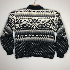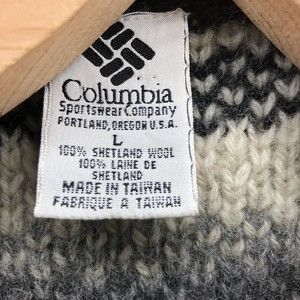 Columbia Woman's Large Fair Isle Shetland Wool Button Front Cardigan Sweater VTG