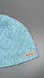 This is a pre-owned Columbia women's knit beanie in a light blue color, designed as one size fits all. The exterior features a textured knit pattern, while the interior is lined with a soft, light blue fleece material for added warmth. A small brown faux leather tag with the "Columbia" logo is stitched onto the front brim. The beanie appears to be in good condition with no significant visible imperfections or signs of wear.
