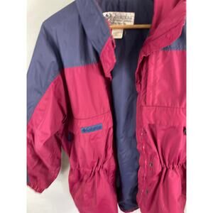 Stay warm and stylish with this Columbia women's coat! This eye-catching pink and purple jacket is perfect for any outdoor adventure or casual outing. It features a comfortable cinch at the waistline and bottom for a flattering fit. Please note that it does not have a hood. This coat is in great shape and ready for its next adventure!