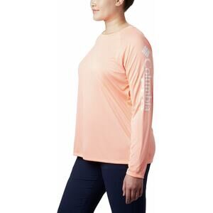 Columbia Women Tidal Tee II Long Sleeve Shirt Plus Size Size 2X Tiki Pink/White