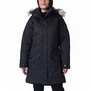 Columbia Women’s Alpine Escape Jacket Black Size Medium. In excellent used condition. This long cold-weather jacket keeps you warm and dry with Columbia proprietary thermal technology to retain your body's heat, and a waterproof fully seam sealed shell to keep the rain out. You can also remove the faux fur as we all got our own style. waterproof-breathable jacket keeps you supremely warm with a combination of 550 fill-power down insulation and an Omni-Heat thermal reflective lining. Removable faux fur hood trim lends a luxe look, while adjustable cuffs and a 2-way center front zipper let you dial in your look and fit.