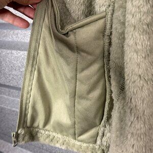 Soft fleece jacket providing lightweight warmth. Features a classic fit with a sage green color, perfect for layering in cooler weather.