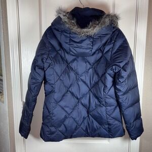Columbia Women's Blue Puffer Jacket Large Feather Down Faux Fur Hood EUC Warm
