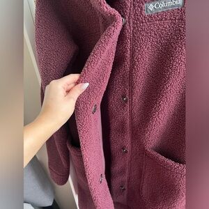 Cozy and stylish Columbia jacket. Features a high collar and front pockets. Perfect for chilly days.