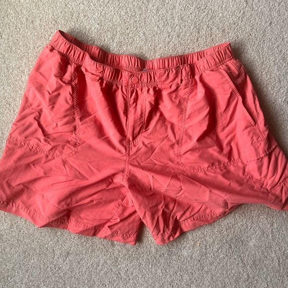 Practical meets style with these Columbia coral women’s hiking/outdoor shorts in size XL. Designed with comfort in mind, they feature an elastic waistband with button closure, front pockets, and lightweight quick-dry fabric—perfect for hiking, camping, travel, or casual everyday wear.