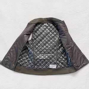 Lightweight insulated vest with diamond quilting inside and out. Dark Grey coloration.