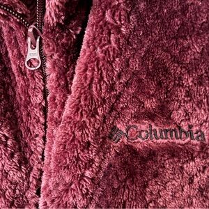 Like New Columbia Women's “Fire Side” Sherpa Full-Zip Fleece Jacket in a rich burgundy(“rich wine”) hue. Size L. This comfortable jacket features a soft, textured plush fabric, perfect for layering or wearing on its own. Excellent pre-owned condition with no flaws