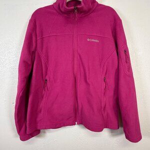 Columbia Womens Fleece Full Zip Sweater Size 2X Bright Pink Athleisure Outdoor