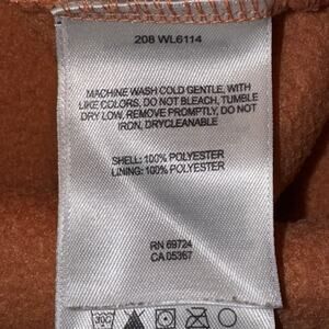 This Columbia Women’s Fleece Jacket in size M is a stylish and practical outerwear piece perfect for the winter, fall, and spring seasons. The peach orange color adds a pop of color to your wardrobe, while the full zip closure and soft fleece lining provide warmth and comfort. The mid-length jacket features a regular fit with long sleeves, making it suitable for travel, casual outings, and workwear. The jacket's design includes zipper accents, embroidered logo detailing, and a solid pattern, giving it a classic and preppy look. Easy to care for with its machine washable polyester fabric, this jacket is an essential addition to any woman's closet.