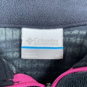 Columbia Womens Fleece Pullover Half-Zip Medium Black/Pink Trim a0949