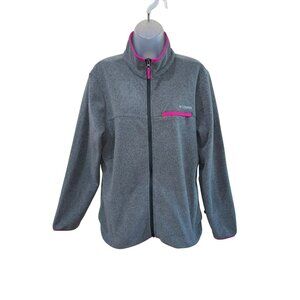Columbia Womens Full-Zip Fleece Jacket L Gray & Pink Polyester *Like New*