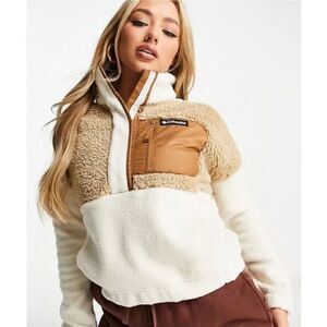 Columbia Women's Half Zip Fleece Cropped Pullover Color Chalk Beach XXL NWT