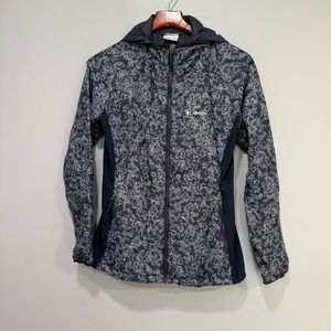 Columbia Womens Hooded Puffer Jacket Full Zip Floral Print Size M lightweight