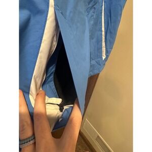 Embrace the elements with this versatile Columbia Interchange Jacket, your shield against unpredictable weather. Imagine yourself navigating city streets or exploring nature trails, fully protected by its weather-resistant design. The stylish blue hue, accented with white trim, ensures you'll look great whether you're running errands or embarking on an outdoor adventure. The adjustable hood provides customized protection from rain and wind, while the full zip closure offers flexibility in varying temperatures. With multiple pockets, this jacket provides a secure place to store your essentials. Perfect for a brisk morning walk, a weekend camping trip, or a casual outing in the city.