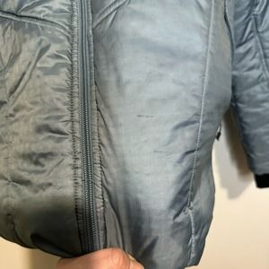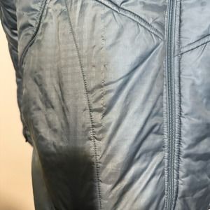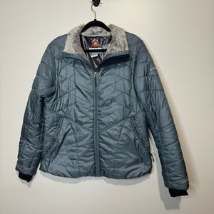 Columbia Women's Interchange Omni-Heat Quilted Jacket Coat size XL in good preowned condition. Couple of small marks/stains on front of jacket. Run/snag on front of jacket. All signs of wear shown in photos. Blue color. Pockets. Zippered closure. Fuzzy detail on collar. Bust measurement is 22”. Length measurement is 28”. Measurements are taken flat and approximate.