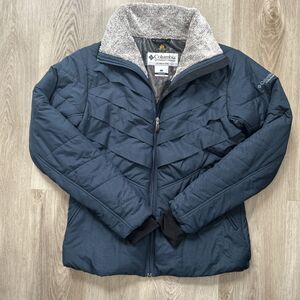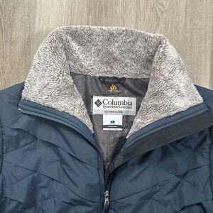 Columbia Womens Large Blue Puffer Jacket Omni-Heat Interchange Fleece Collar
