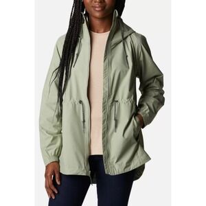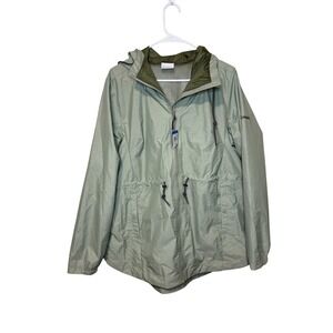 Columbia Women's Lightweight Hooded Rain Jacket Sage Green Drawstring Large