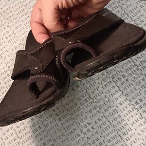 Columbia Women's 'Lima' Black Leather & Neoprene Toe Loop Slides Flip Flops sz 9. Pre-owned.