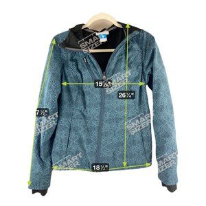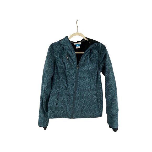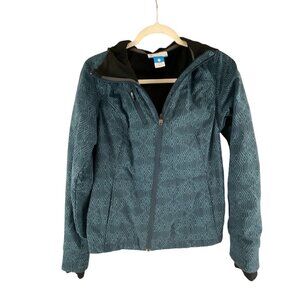 Columbia Women's M Teal Patterned Weatherproof Jacket Hooded Asymmetrical Zip