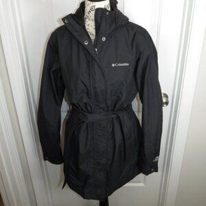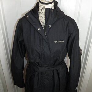 Columbia Women's Medium Long Rain Jacket Trench Belted Hooded Omni-Tech