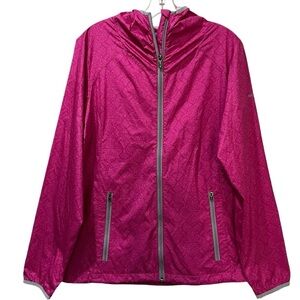 Columbia Women’s Medium Pink Floral Print Zip Up Windbreaker Jacket B2