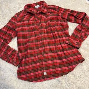 Columbia Women's Medium Red Cotton Long Sleeve Button Up size Large