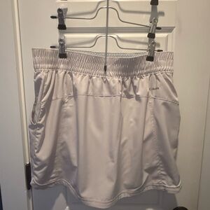Stylish mini skirt by Columbia. Features a light gray color. Perfect for casual outings. Skort. 17"