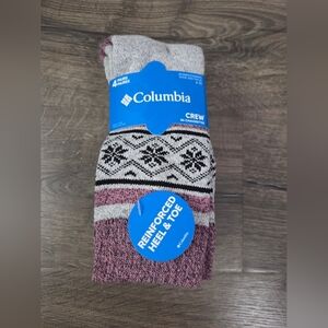 Experience comfort and style with Columbia moisture control crew Socks. Featuring a blend of gray and pink, these socks offer reinforced heel and toe for durability. Perfect for everyday wear.