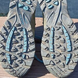 olive green suede with turquoise laces. Beautiful sturdy hiking boots. Good Condition, just too small for me.